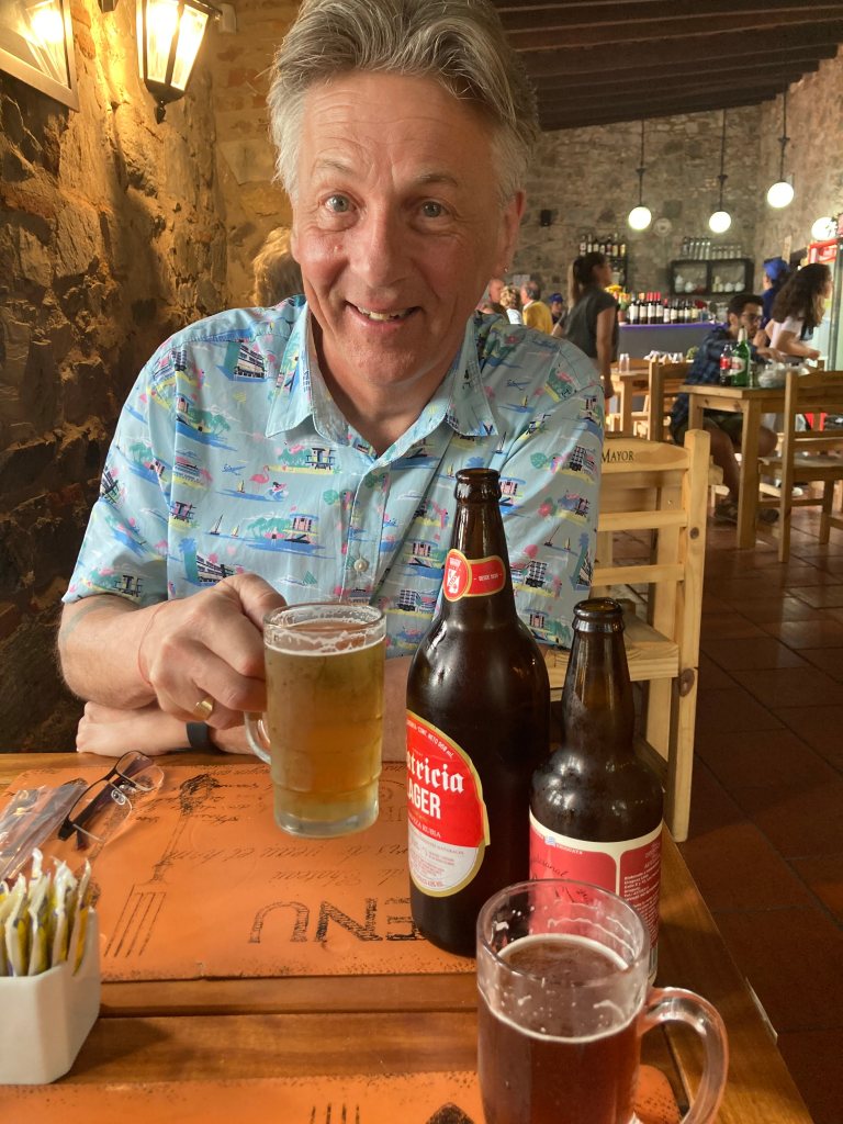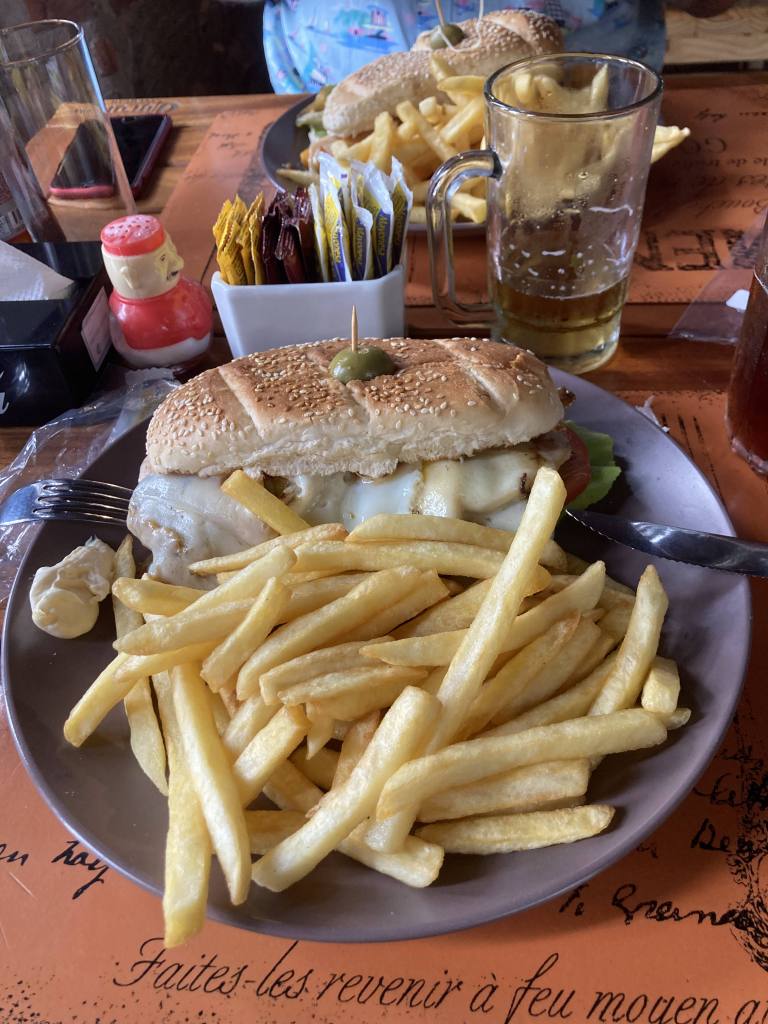 Refreshed, it was time to eat, traversing the cobbled streets of the old town once again, finding a table at restaurant called Los Kamikazes that offered a menu with some vegetarian options, finally choosing chivito, fries and a couple of local beers. Refuelled, we wandered along the promenade again but as the day had been mostly cloudy there was no sunset to enjoy this evening.