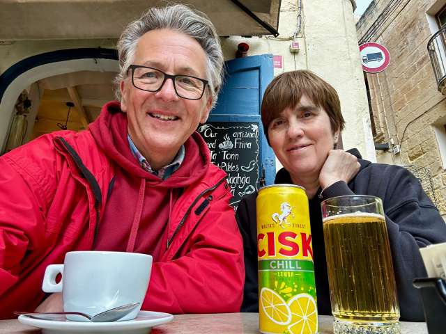Despite this initial hold up, the rest of the process was uneventful and even a 30 minute delay in take-off didn’t delay our arrival time in Valletta. Our experience of passport control entering Europe, since Brexit, has not been good and in some cases has made our journey through the airport unbearably long, however, Malta certainly set a shining example of how it could be done well. We touched down at 17:20 and by 18:45 we were checked in to our hotel in Sliema, fully unpacked and were sat half a mile down the waterfront in a restaurant (Kalama) with a beer. We had arrived and, despite it now being dark, we were no longer stuffed up in our winter coats!!