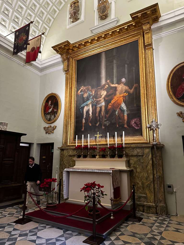 After dark and not wanting another meal, we found a table at a bistro and enjoyed a glass or two of wine and a plate of fritto misto! The forecast of rain and high winds overnight meant that it started to sweep in as we sat there. We watched the final ferry struggle to dock and then the rain began. It rained. A lot! Despite the inclement weather nobody moved, our waiter ensured we were dry by moving us further under the giant umbrella and told us to stay as long as we liked despite having already paid our bill!!