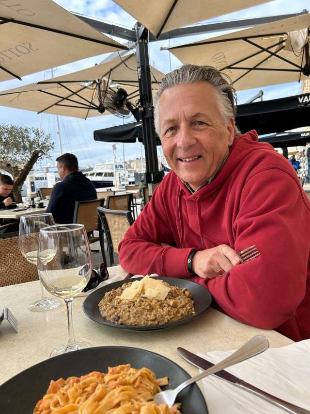 Our original plan had been to return to Valletta to eat but we loved the feel of the dockside in Birgu, so decided to look for a restaurant on the waterfront. Our experience at home led us to believe that we would pay a premium for the location but we set off on a quest. As we strolled through the marina with its superyachts we were surprised to see it was owned by Camper & Nicholson – a company we know locally! The old dock buildings are now being renovated and reimagined as restaurants with large outside seating areas. We checked menus as we walked along – our only requirements being an outside table and no English food. We finally picked SottoVento and ordered. The staff were great and the food was exactly what we wanted – the portions were huge and we knew we wouldn’t need to eat again for the rest of the day. We chose to sit and enjoy the moment rather than hurry back to the ferry.