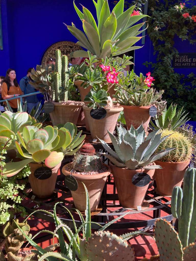 Busy doesn’t even come close to describing how busy the tiny garden of Yves Saint Laurent was. Ushers were keeping the crowds moving and coaxing us through all of the one-way sections to view the various displays of cacti and flowering bushes.
