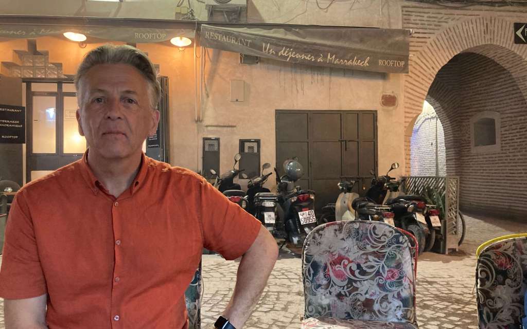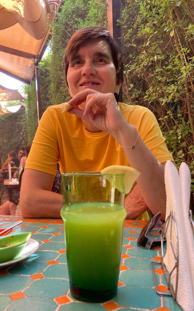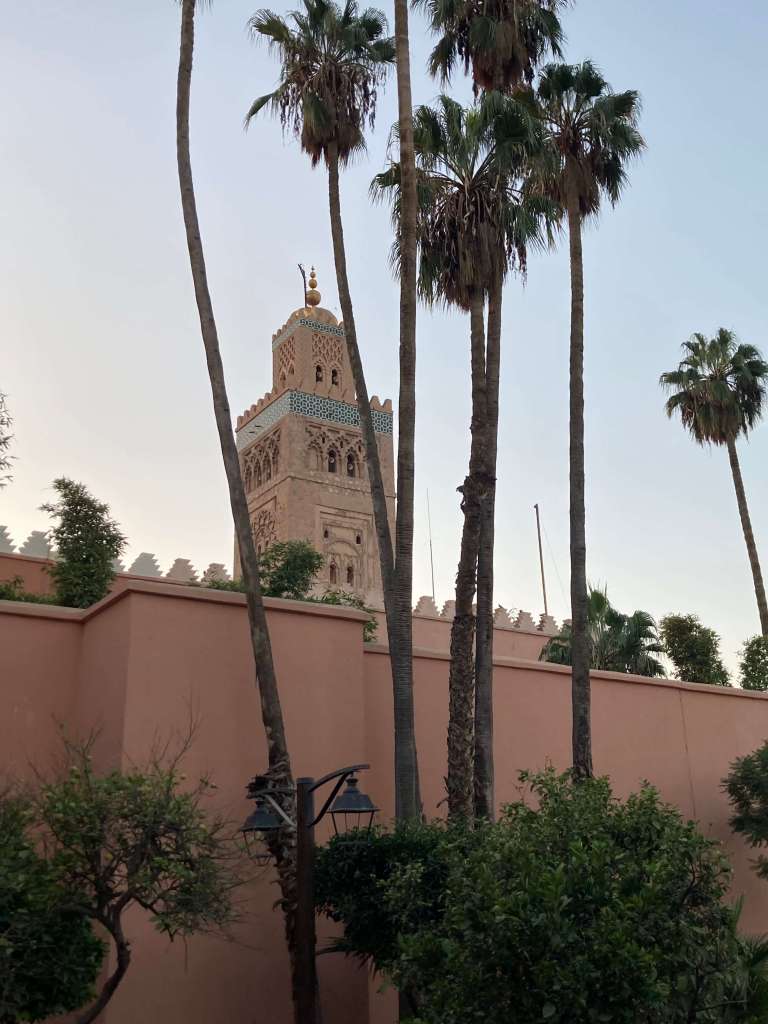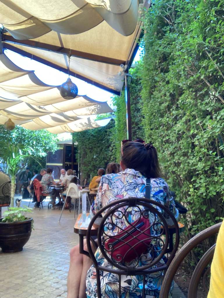 Pausing briefly for an afternoon tea with a selection of Moroccan cakes at a corner cafe, we thought would be a relaxing thing to do, but the corner was busy with people and scooters and the dusty air made for a slightly uncomfortable experience, so we swiftly headed back to the riad to pack our bag.