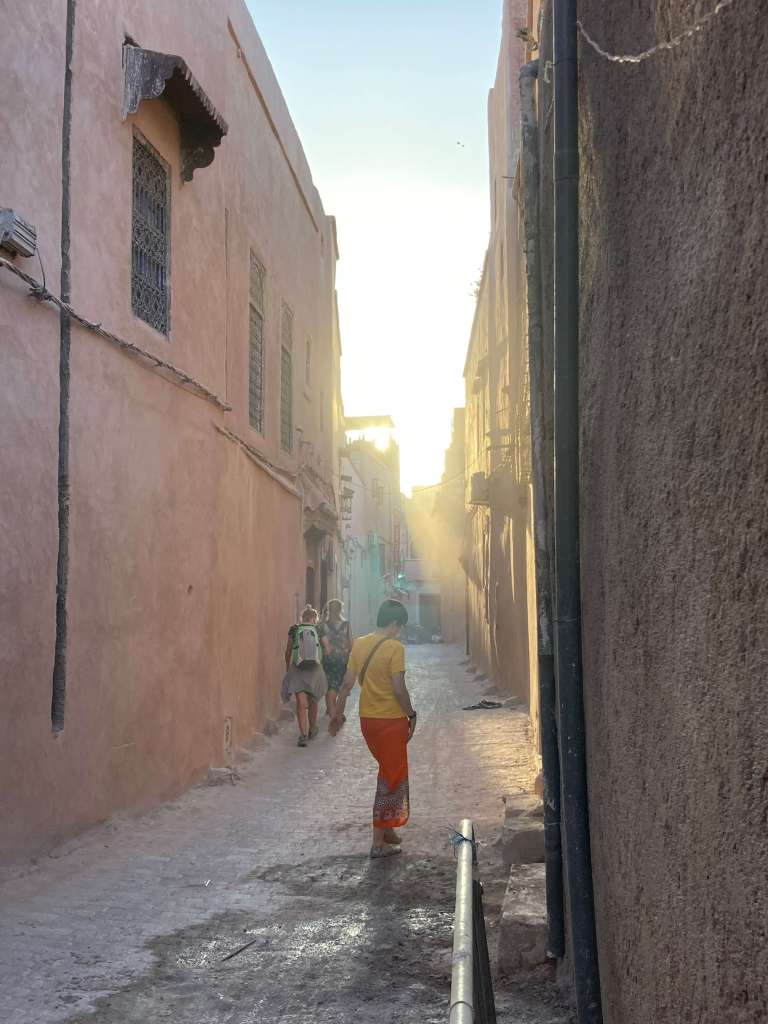The narrow streets from the Riad were really dusty this morning and the early morning light finding it’s way through the gaps in the buildings illuminated it, making it even more visible that it was.