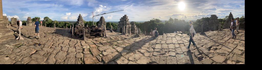 With our tickets quickly and easily purchased for our visit the next day, our guide took us to the 9th century Phnom Bakheng to view the sunset. Usually there is a 300 person limit at this monument, on a first come first served basis, but we passed the gate unhindered and we climbed the winding trail, clambering up the steep temple steps to be greated by an unhindered view of the surrounding area from the top. Looking around there were probably fewer than 50 people on the top of the temple so everybody was able to find a spot with a good clear view.